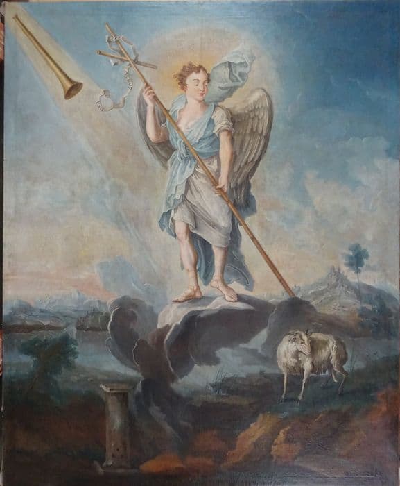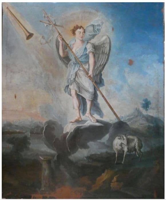 tableau et son cadre : Ange portant la tête de saint Jean-Baptiste