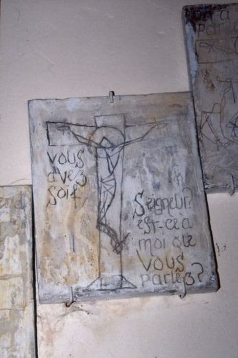 Inscription (sur chaque station) : Venez donc à l'autel car vous êtes caché vers nous Sauveur du monde, Ici la Passion prend fin et la compassion continue, Vous avez soif Seigneur ? Est-ce à moi que vous parlez ?, On a lié l'agneau par les pieds on a attaché l'omniprésent, Levons les yeux et osons regarder Jésus tout pur, Sauvez nous du troisième péché qui est le désespoir, Oh ! Si cet homme était le Dieu tout Puissant il est donc vrai !, Sauves nous de la seconde charge que l'on fait volontairement par envi, Apprenez nous Véronique à braver le respect humain, L'on nous emploie nous aussi même de force à votre croix, Elle se tient debout devant Dieu et lui offre son âme à lire, Sauvez nous du premier péché que l'on commet par surprise, Il nous faut porter la croix avant que la croix nous porte, C'est fini nous avons jugé Dieu et nous l'avons condamné à mort.
