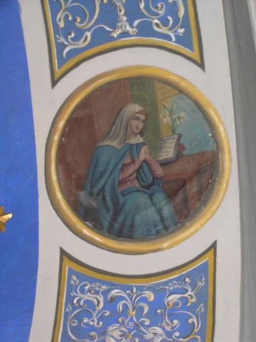 peinture (médaillon) : Vierge assise en prière