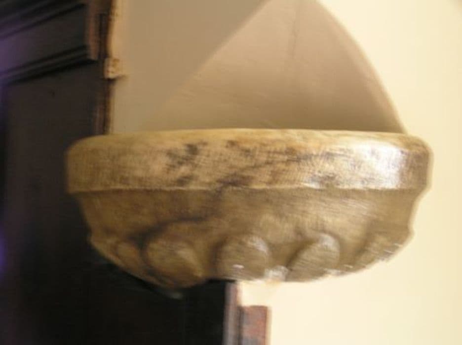 Bénitier en pierre décoré de godrons à la partie inférieure.