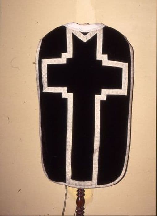 chasuble (2) ; étole de clerc (2) ; manipule (2) ; voile de calice (2) ; bourse de corporal (2) ; ornement liturgique catholique