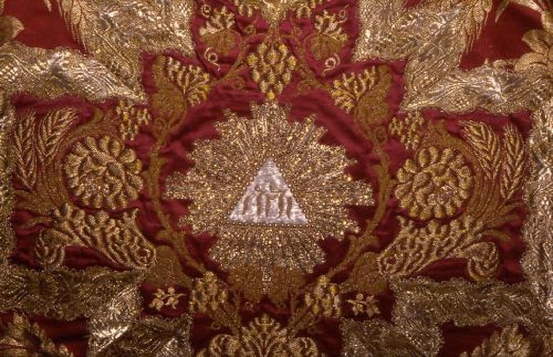 soie (rouge) : brodé ; fil métal (or)