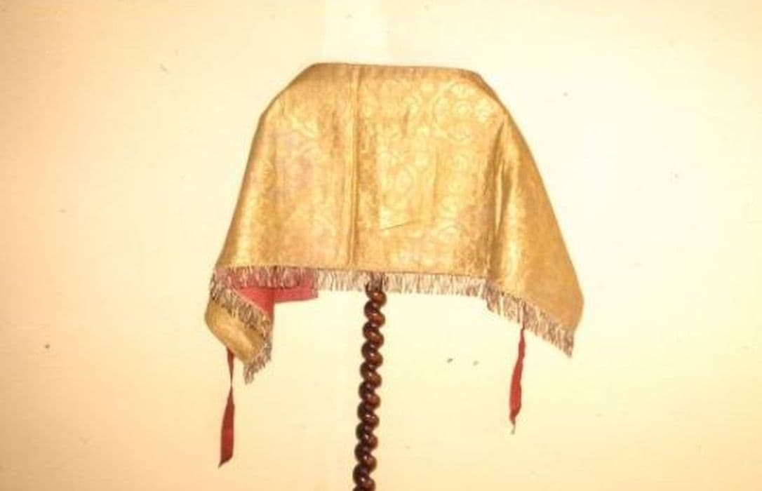 Petit devant de tabernacle en damas doré. Doublure rouge.