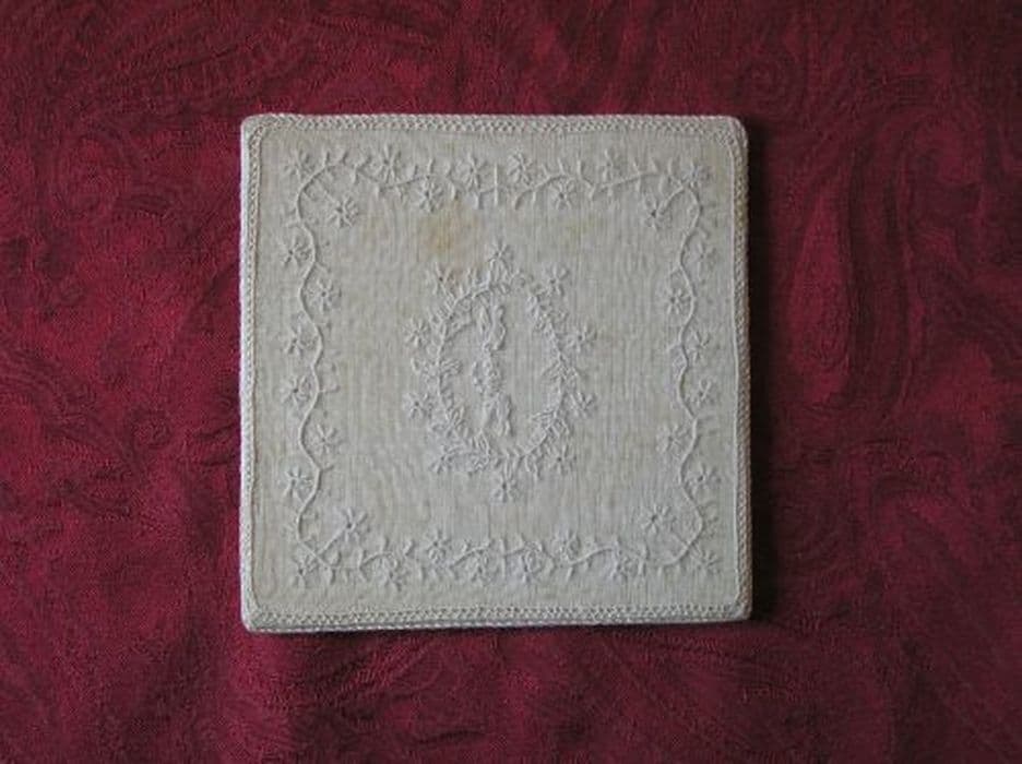 Pale en gaze de lin blanc uni brodé au fil.