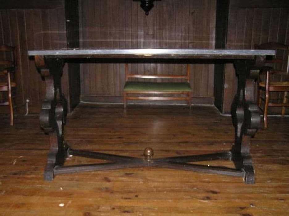 Table de la Sainte-Cène en bois. Dessus en marbre gris veiné de blanc.
