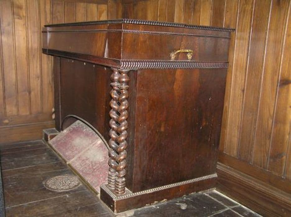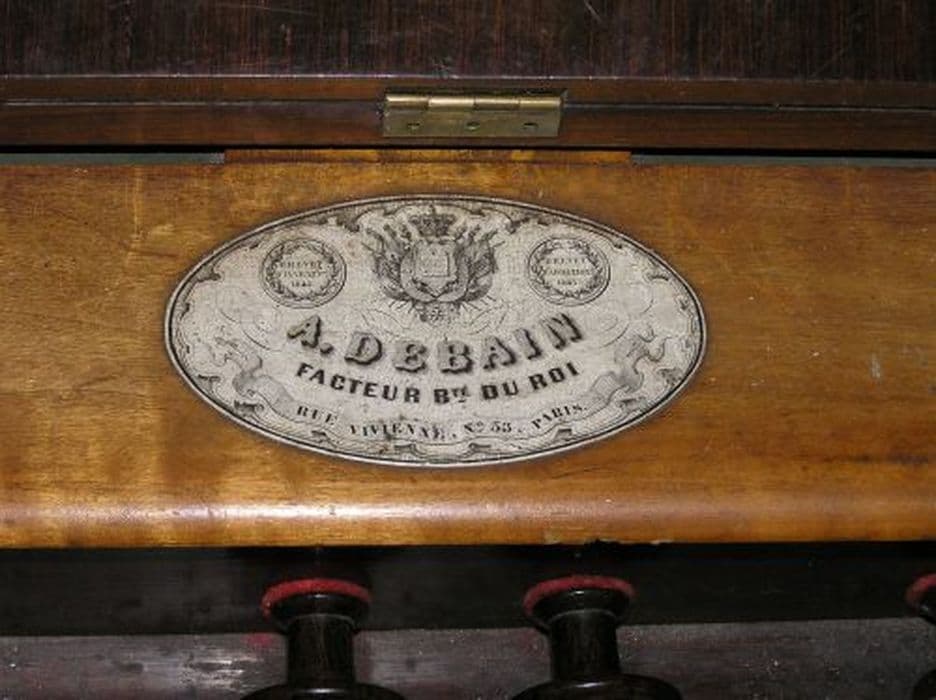 Harmonium en acajou de style Louis-Philippe avec porte-bougies en bronze.