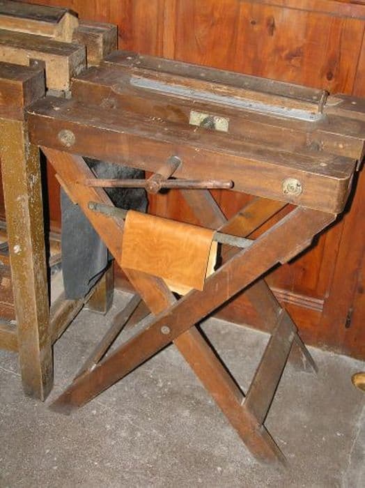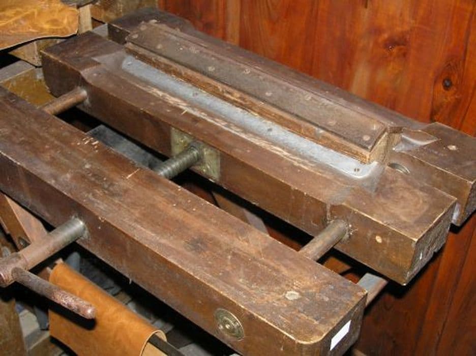 Etau en bois pour travailler la peau.