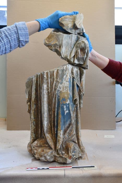 calcaire : taillé ; calcaire : taillé, peint (polychrome), doré