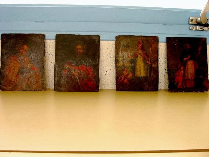 4 tableaux : Saint Pierre, saint Paul, saint Nicolas, saint Augustin