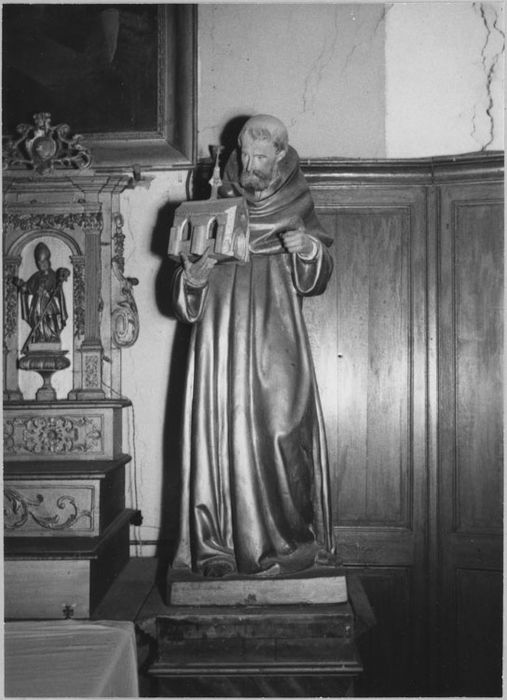 Saint Robert, statue, terre cuite, peinte et dorée, par Moynet, 1840, 12-01-1977.