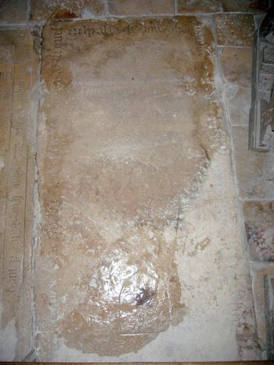 Armoiries effacées. Ecriture gothique en bordure. Transcription : CY GIST JEHAN DE LA BARRE [...] LEQUEL / TRESPASSA LE VIIIe JOUR / DAOUST 1531 (?).