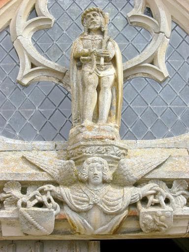 groupe sculpté : Christ aux liens, ange et blasons (œuvre volée)