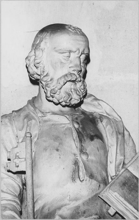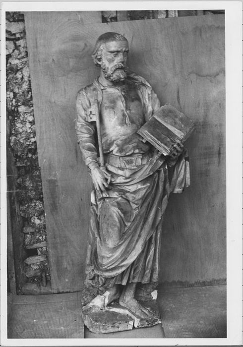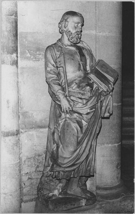 Semble faire la paire avec la statue de saint Paul dans le même édifice, bas-côté sud (PM10003049). Restauré par Chiquet en 1972.