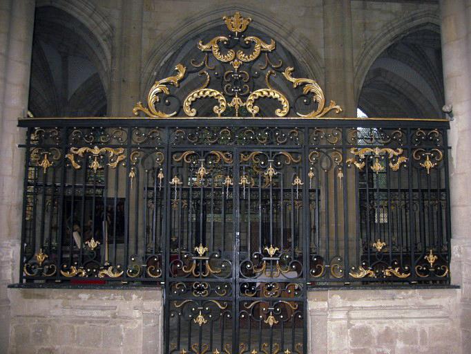 Grille du choeur, par J.-B. Coquelet, de Bar-sur-Aube, fer forgé, 1746-1747, 27-12-1913.