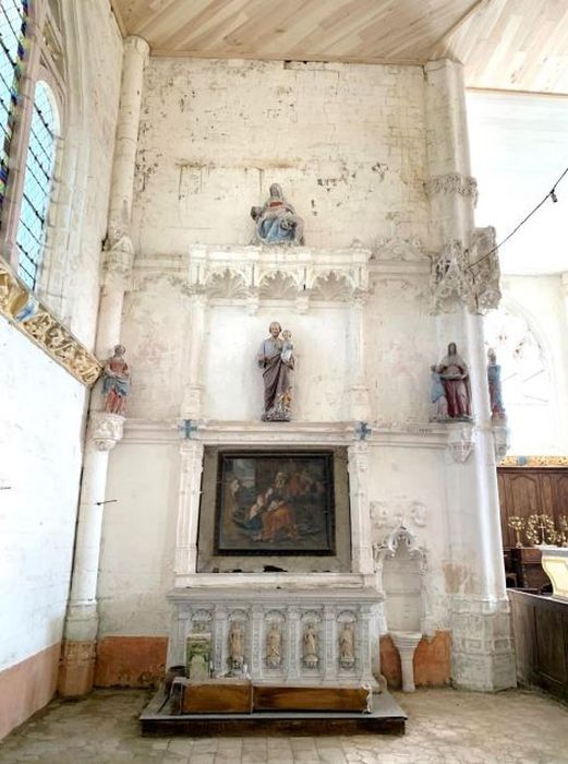Retable de la chapelle sainte Anne : l'Éducation de la Vierge, pierre sculptée et toile, première moitié du 16e siècle, 05-05-1909.