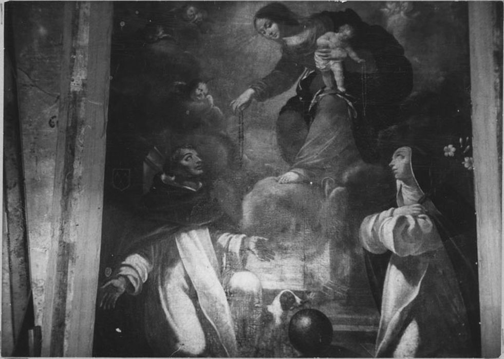 saint Dominique, sainte Catherine de Sienne, chapelet ; Vierge