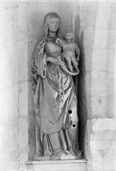 La Vierge à l'Enfant, statue placée contre un pilier de la nef, côté sud, pierre, 16e siècle, 20-04-1896.