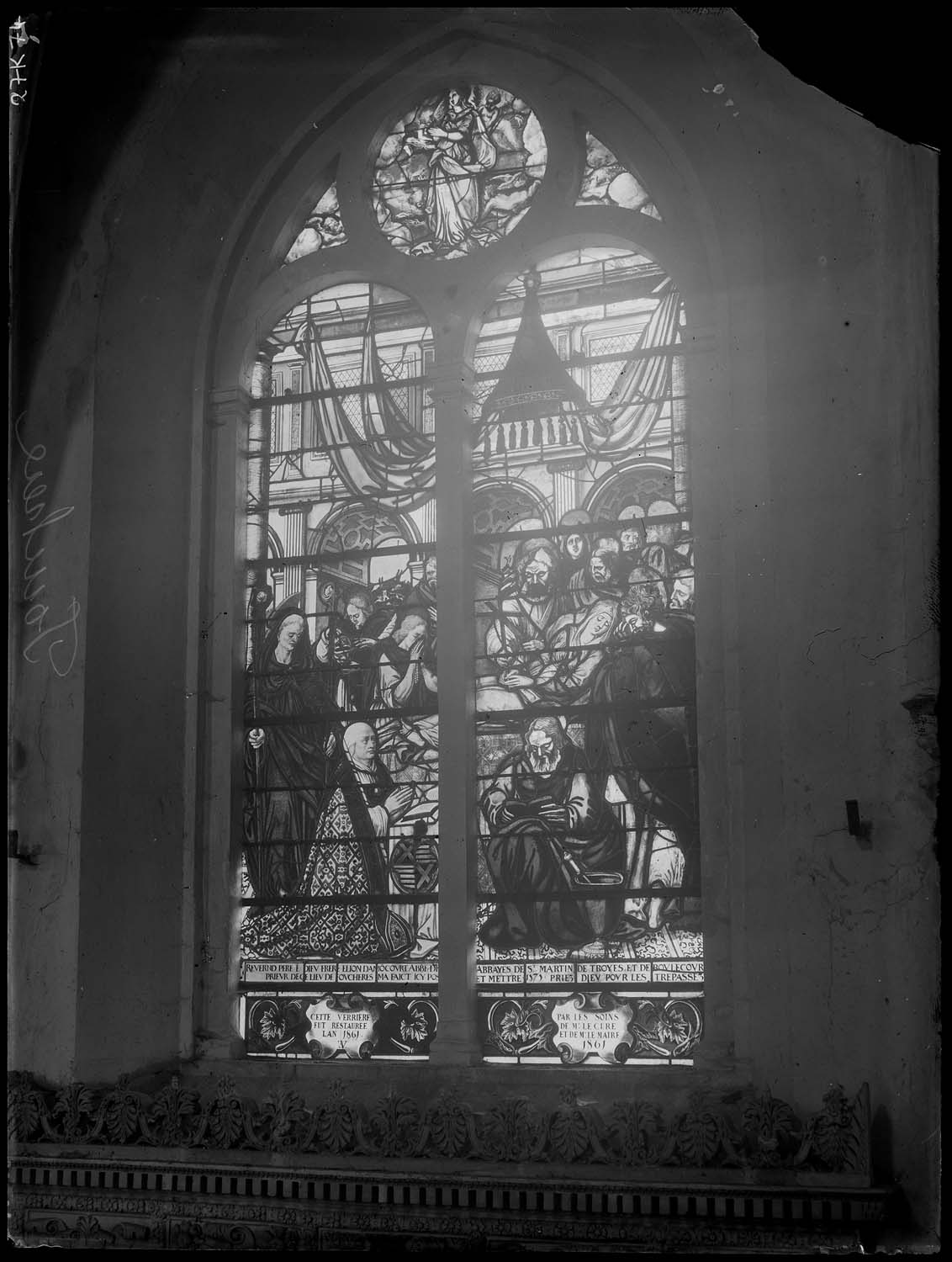 Verrière : Mort de la Vierge, donateur, saint Martin