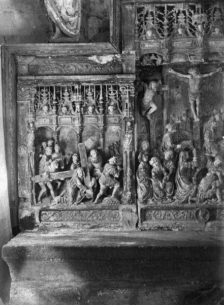 POP | Plateforme ouverte du patrimoineRetable, haut-relief : Portement de Croix, Crucifixion, Résurrection