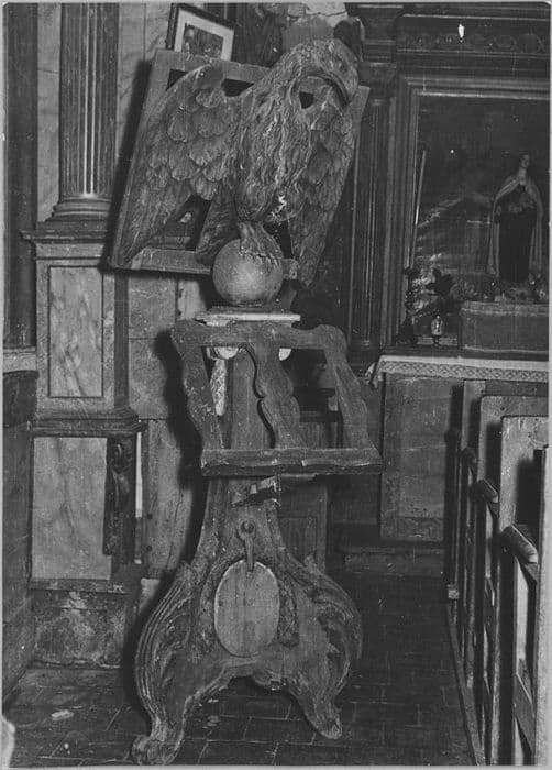 Le lutrin comporte deux reposoirs opposés et à deux hauteurs différentes.
