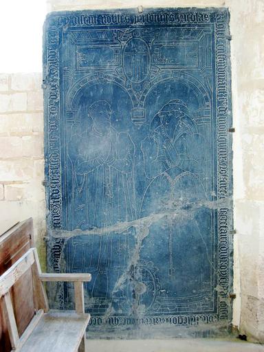 Dalle funéraire à effigies gravées de Nicolas Riglet, seigneur de Mentgueux, + 1567, et de Colette Legois, sa femme, + 1560, marbre noir, 16e siècle, 07-12-1913.