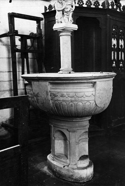 Fonts baptismaux, pierre sculptée, fin du 16e siècle, 17-10-1908.