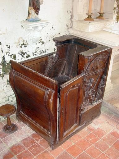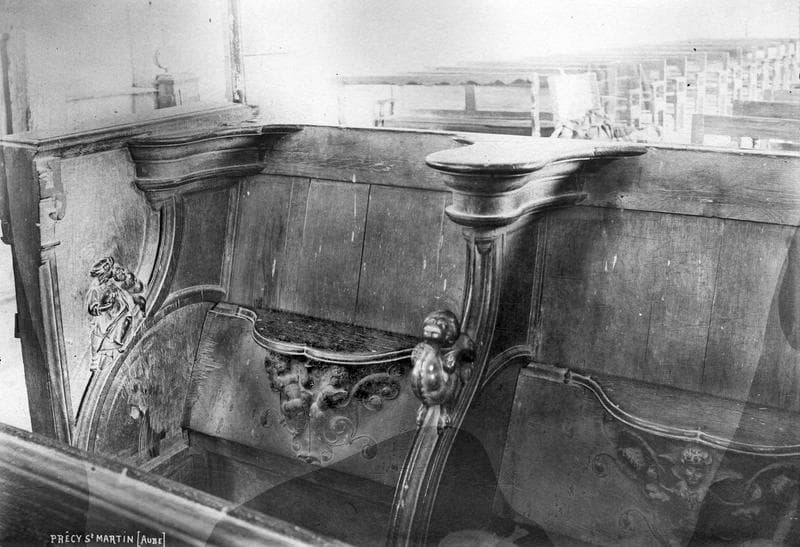 Stalles sur lesquelles sont sculptés des panneaux en remploi.
