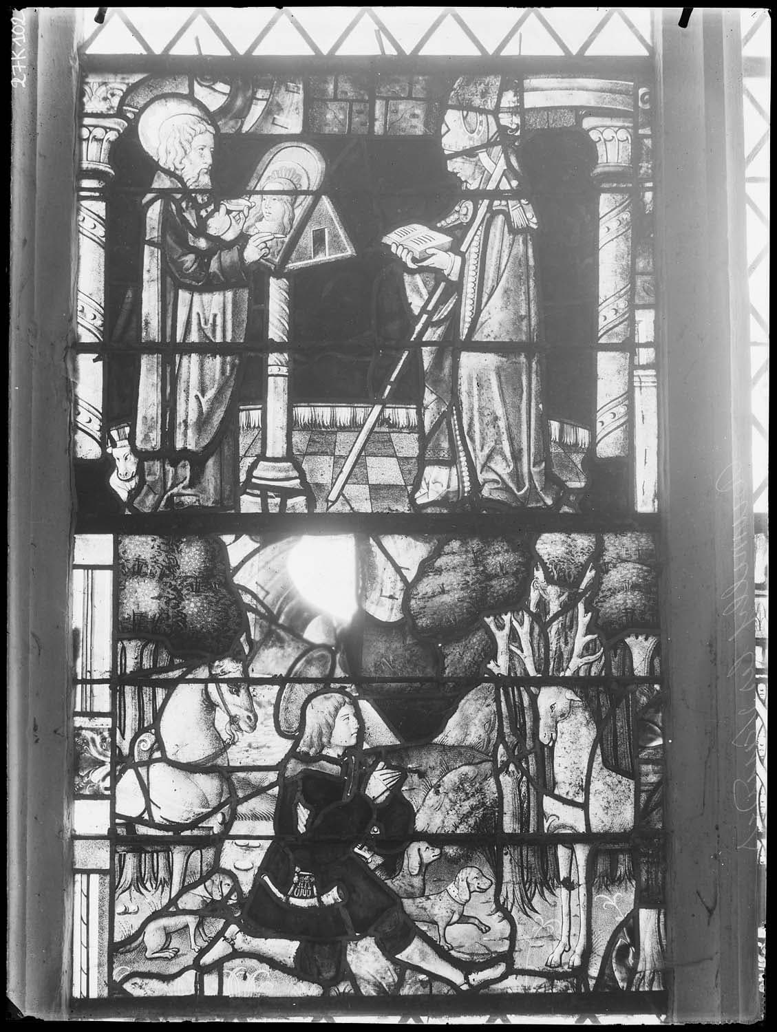 Verrières : Saint Luc peignant la Vierge, saint Loup, saint Humbert, Trinité, Vertus évangéliques ; salutation angélique ; réprouvés, Présentation au Temple