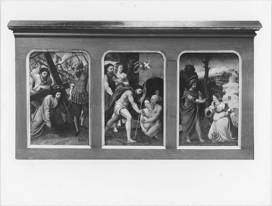 Retable de l'autel de sainte Catherine : l'Apparition du Christ à Marie, la Descente aux Limbes, l'Apparition du Christ à Madeleine, triptyque, panneaux peints, 16e siècle, 17-10-1908.
