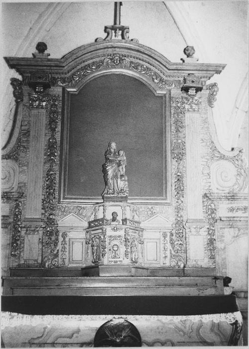 Tabernacle et retable du maître-autel, bois sculpté, peint et doré, 17e siècle, 11-12-1980.