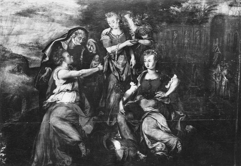 Panneau peint : Moïse sauvé des eaux