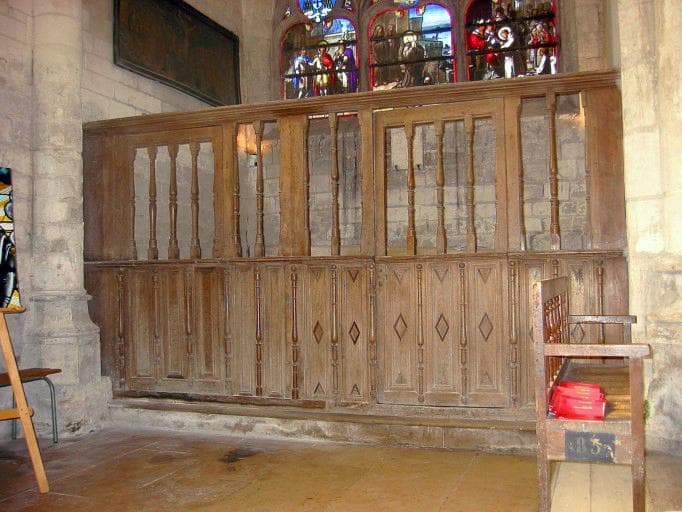 2 portes. Partie supérieure à balustres. Partie inférieure à caissons séparés par des balustres engagées. Décors plaqués ou incisés.