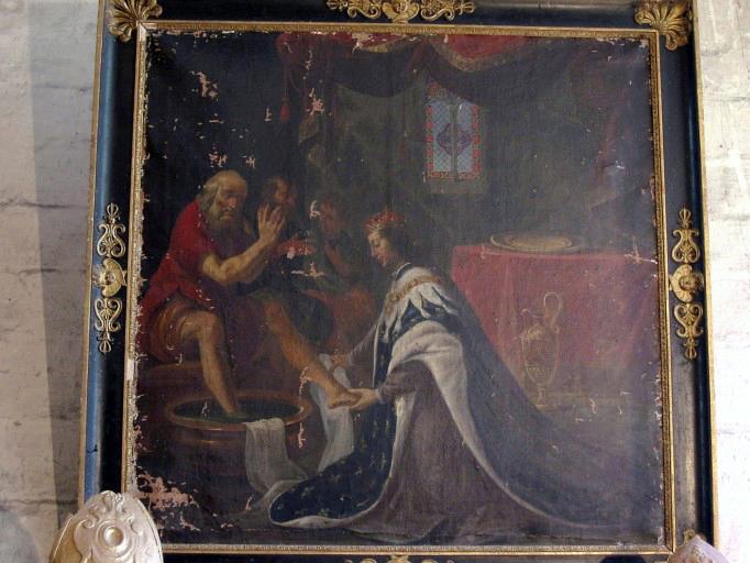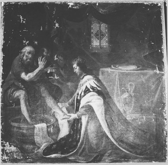 Saint Louis lavant les pieds d'un pauvre, toile, 17e siècle, 11-12-1980.