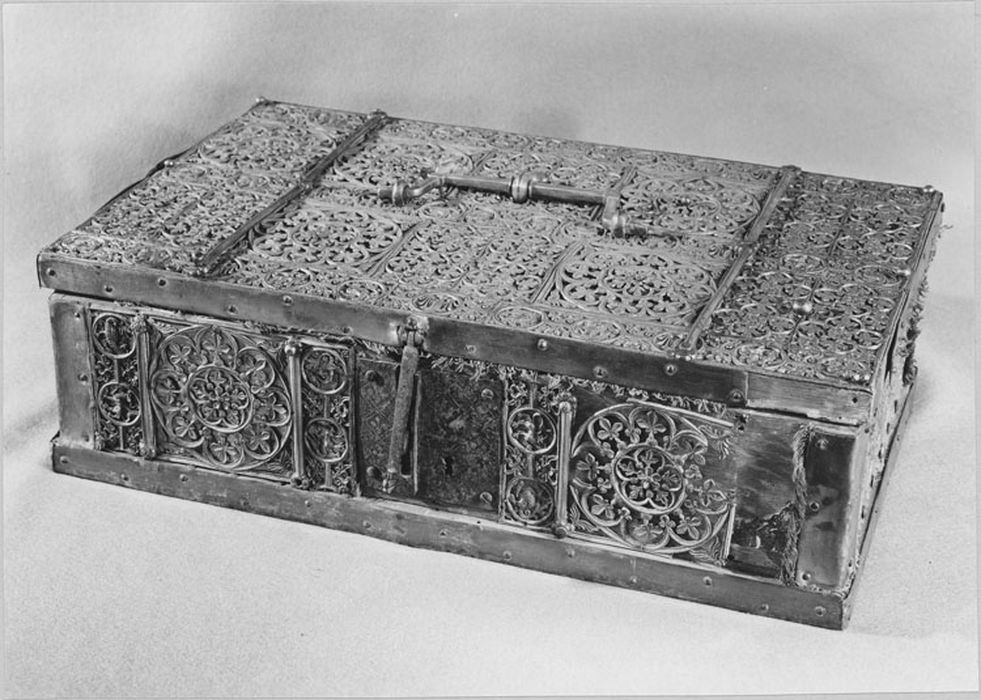 Coffret en bois recouvert d'étain doré, 14e siècle, 15-09-1894.