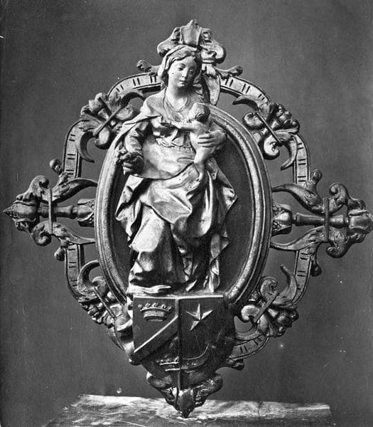 6 clefs de voûte : Vierge à l'Enfant, sainte Barbe, sainte Catherine, saint Jean-Baptiste, saint Michel, saint Claude