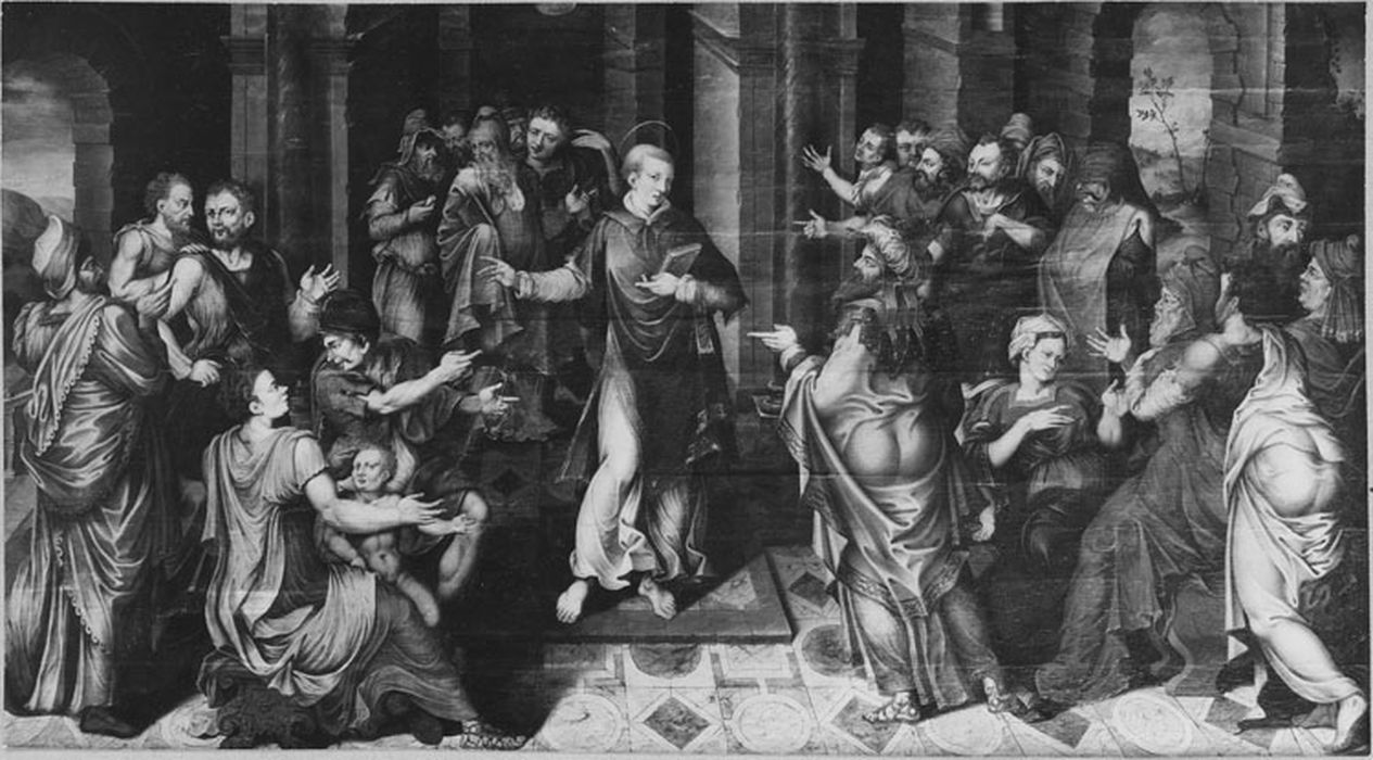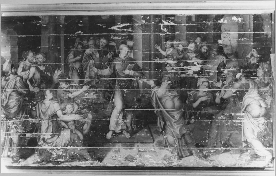 POP | Plateforme ouverte du patrimoinePanneau peint : Quatre docteurs de l'Église latine (grisaille), Prédication de saint Étienne