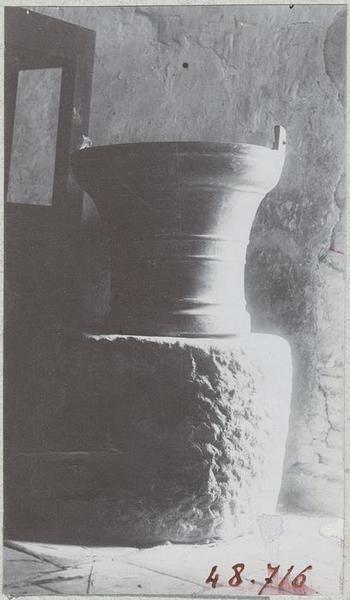 Placé sur un bloc de pierre.