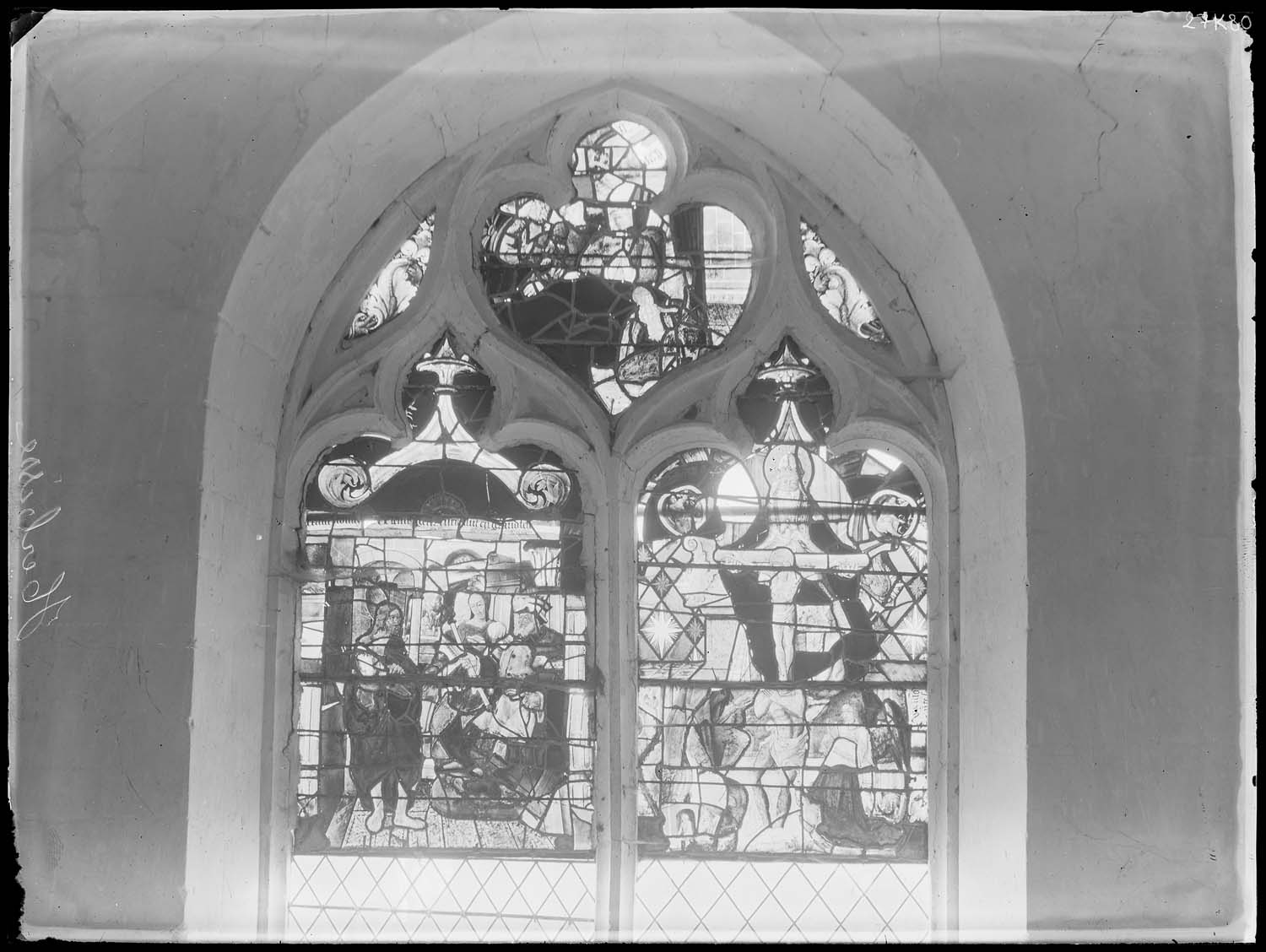 POP | Plateforme ouverte du patrimoine3 verrières : Saint Jean devant Hérode, Baptême du Christ, Trinité, Descente de Croix, Résurrection, Crèche, Adoration des Mages