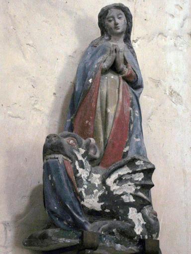 La Vierge à l'Enfant, saint Nicolas, sainte Marguerite, statues, pierre polychrome, 16e siècle, 27-12-1913.
