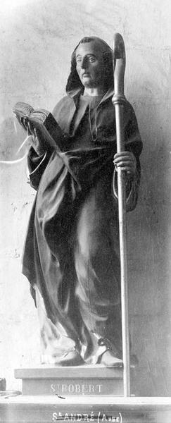 Saint Robert, saint Benoît, saint Frobert, trois statues, pierre, 16e siècle, 17-10-1908.