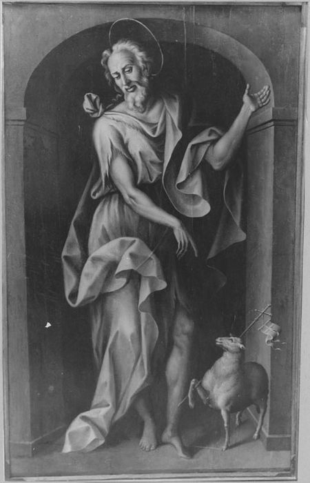 POP | Plateforme ouverte du patrimoinePanneau peint dit panneaux Fliche : Vision de saint Joachim, saint Jean-Baptiste (grisaille)
