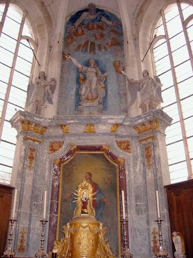 Le retable est complété par une gloire ornant le mur de l'abside : ensemble homogène.