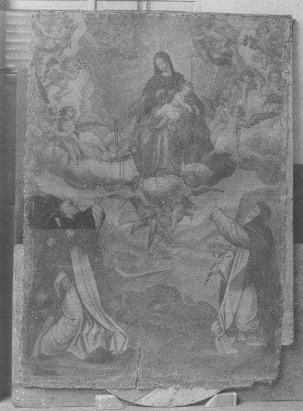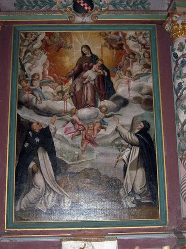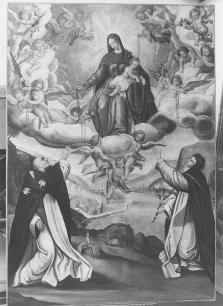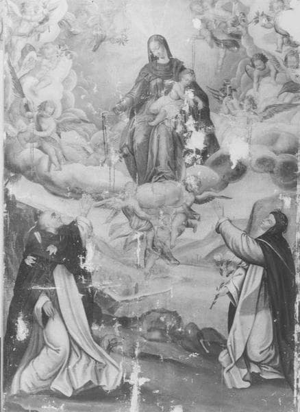 saint Dominique, sainte Catherine de Sienne, chapelet ; Vierge