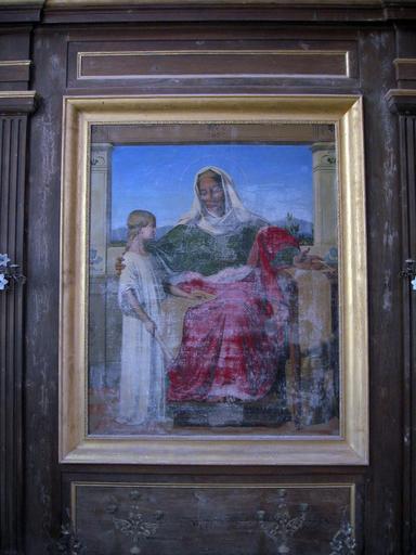 Sainte Anne expliquant à la Vierge les Mystères de l'écriture, par Eugène Maison, 1845, signé et daté, huile sur toile avec cadre, 19e siècle, 19-10-1995. Précédemment inscrit au titre objet le 23-10-1992.