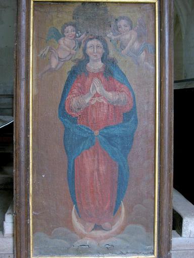 Ces deux tableaux proviennent peut-être d'un retable dont il subsiste les colonnes de la fiche PM10003661 et des éléments dans les combles de l'église .