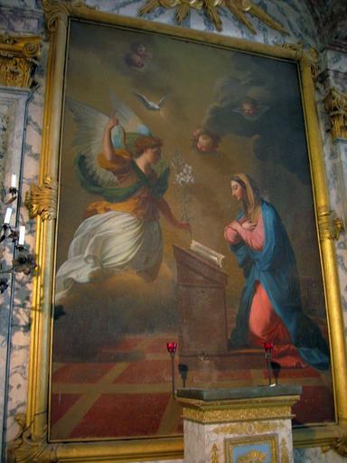 Tableau Annonciation (fond du collatéral sud), huile sur toile, 19e siècle.