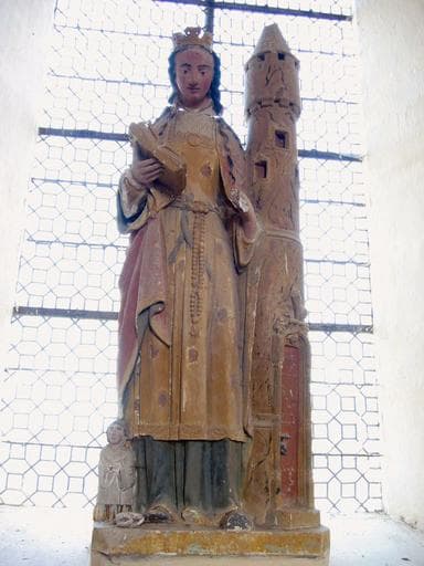 La polychromie n'est sans doute pas d'origine. La tête de sainte Barbe, de même que sa main droite, et le livre, sont des éléments rapportés.