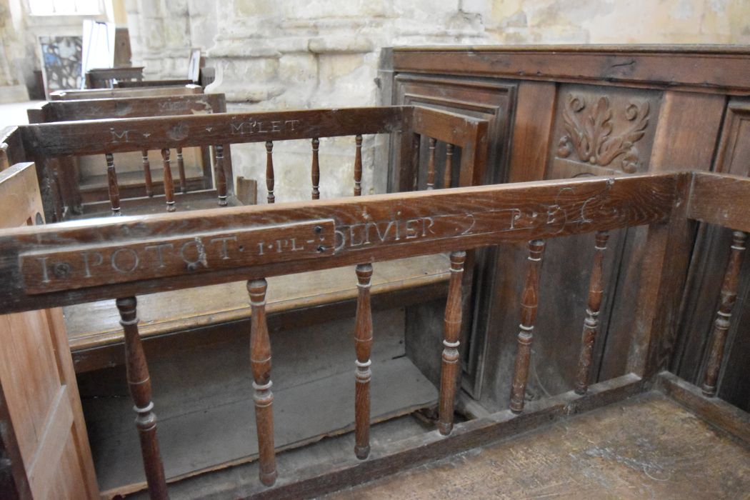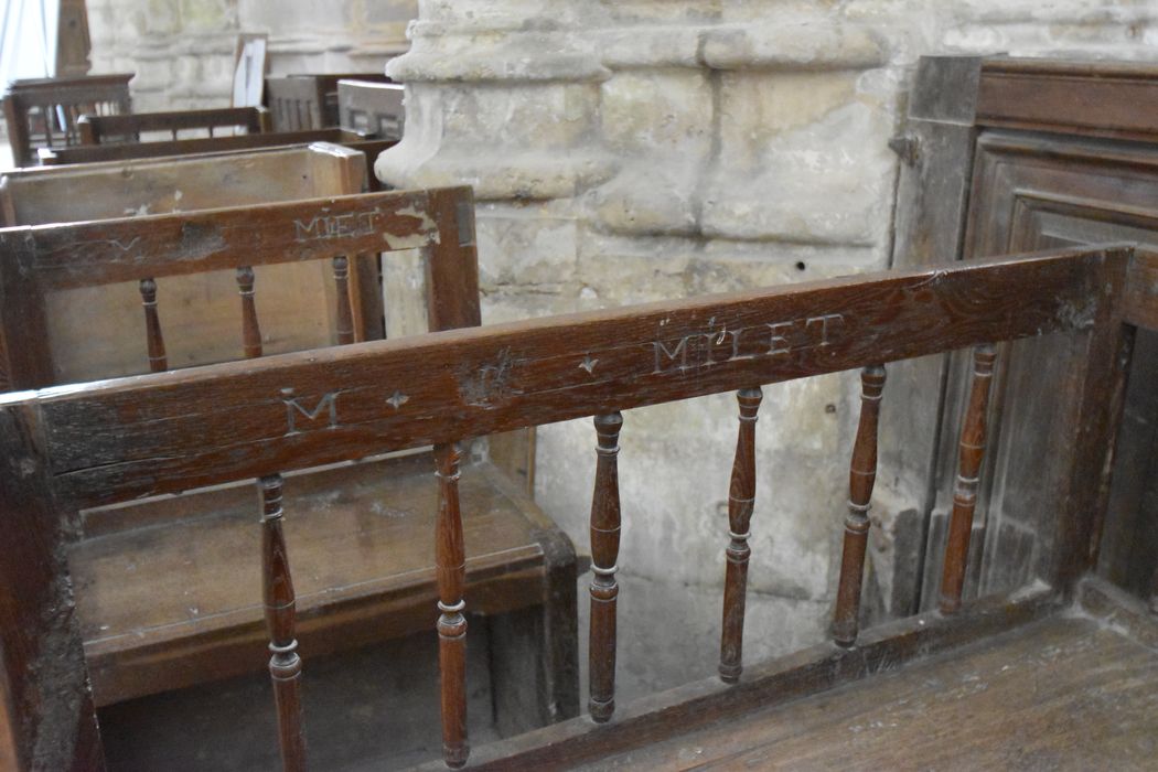 Bancs avec inscriptions datées, bois, 18e siècle.