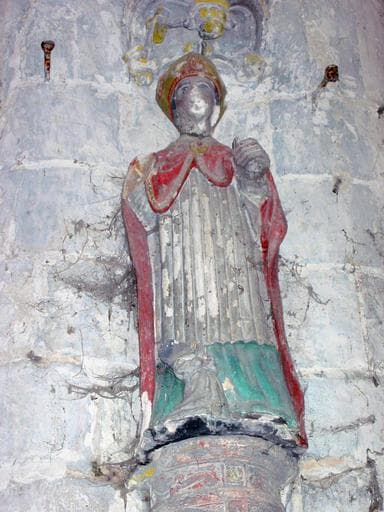 Polychromie récente. Tête du saint faite dans un bloc séparée.