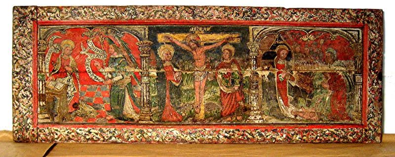 prédelle de retable : le Calvaire entre l'Annonciation et la Nativité